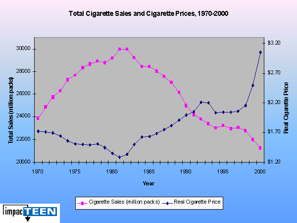 Shows the relationship between cigarette prices and sales over time